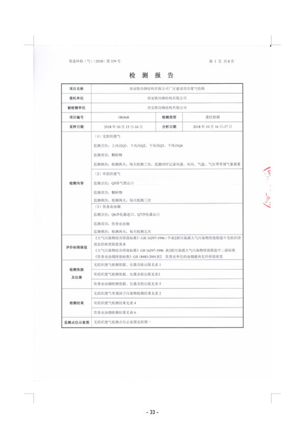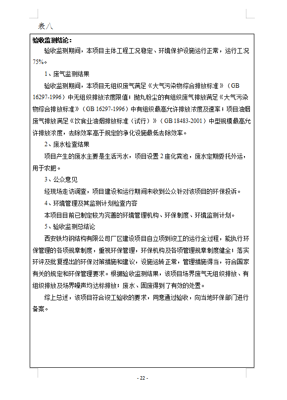 西安鐵均鋼構廠區建設-驗收監測報告(廢水、廢氣)